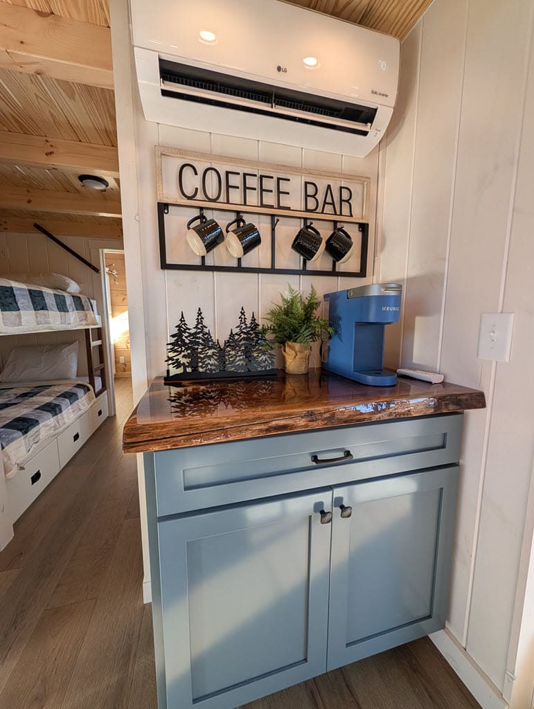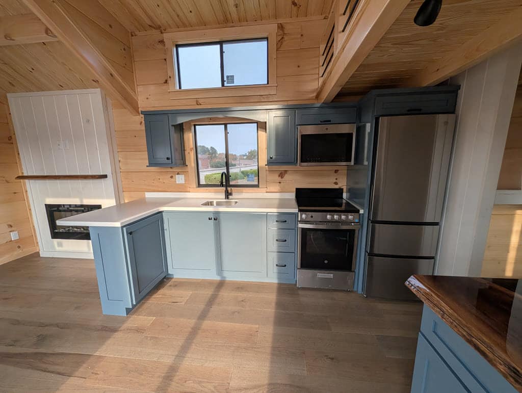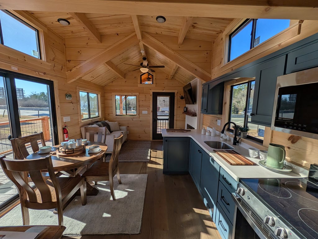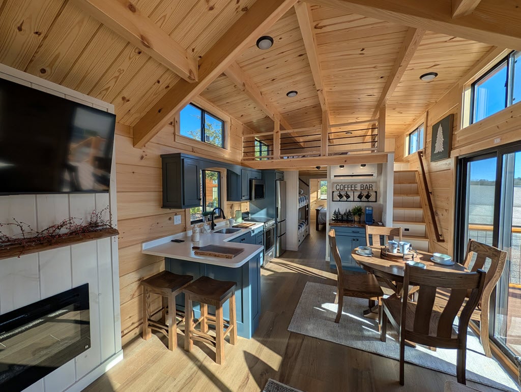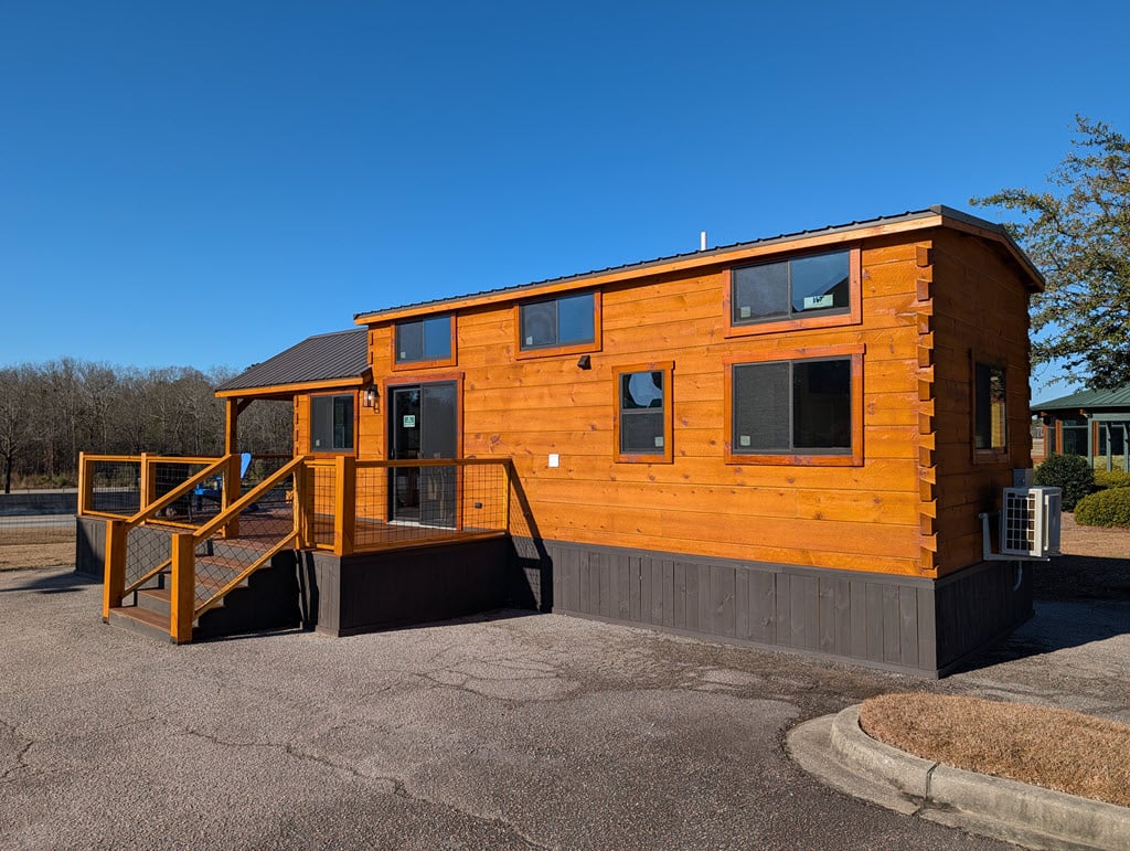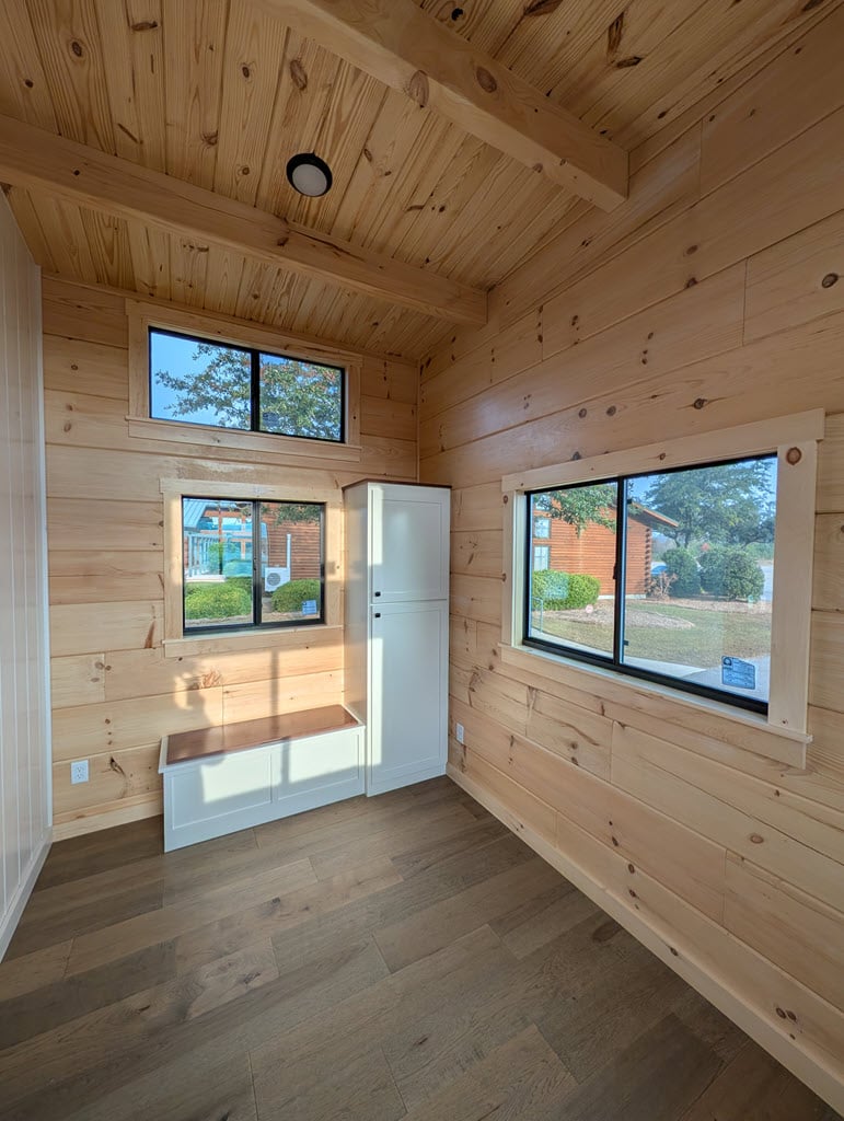 Set on a solid steel chassis and built with Southland’s kiln-dried logs, each home connects easily to power, water (with tankless heater), and sewer. Spray-foam insulation in roof and floor, bronze windows, and a 40-year metal roof mean your tiny home is as durable as it is beautiful.
